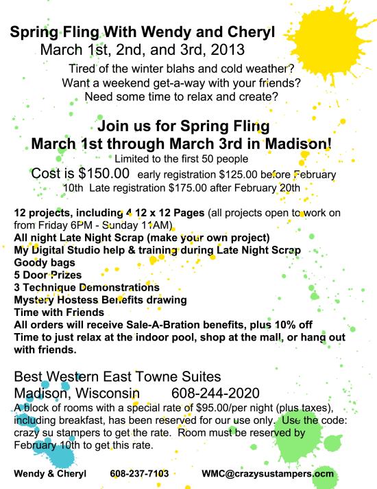 This LINK to the Best Western East Towne Suites hotel has directions and many things to do in Madison, as well as a list of nearby restaurants! To make your reservations, call the hotel directly at (608) 244-2020 and ask for the 'crazy su stampers' special rate before February 10th. HURRY! There are only a few rooms left at this special rate so don't delay.
