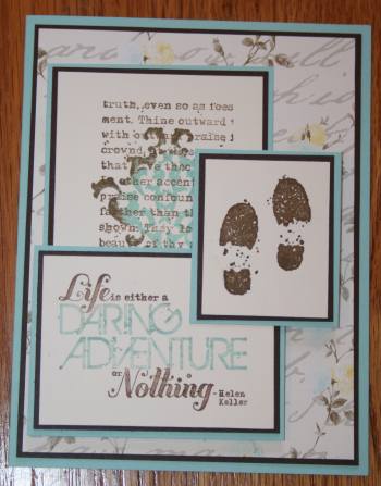 Here is another card using the same stamp set, but has a totally different feel and would be a great card to encourage your friend who is experiencing one of life's many Adventures.