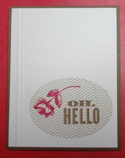 This card was from February 10 for 20 class.  I made up extra's of these to send to the out of town people, and I made up a whole bunch of these to send out for myself.  It's just so fun to send a quick "Oh, hello" greeting!  It's just a great card to have on hand to send to people that you are thinking about.