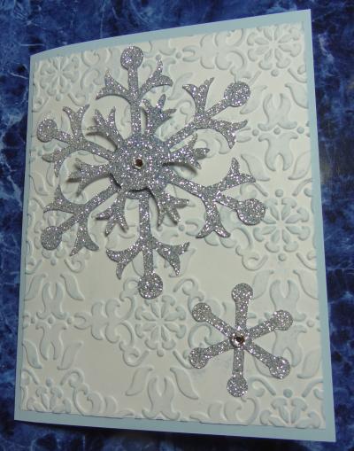 I have not been around a lot but I have been stamping. It is quite an adjustment without Wendy. I keep thinking she is going to walk into the house and do….. something! We – you know the empirical "we" are starting a special program TODAY ! with the start of the new holiday mini catalog. The new program is SNOWFLAKES! I know each and every one of you is as excited about snowflakes as I am and wish that all that rain last week was SNOWFLAKES just like I did!